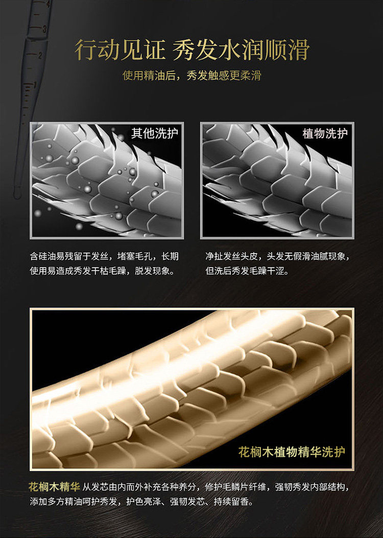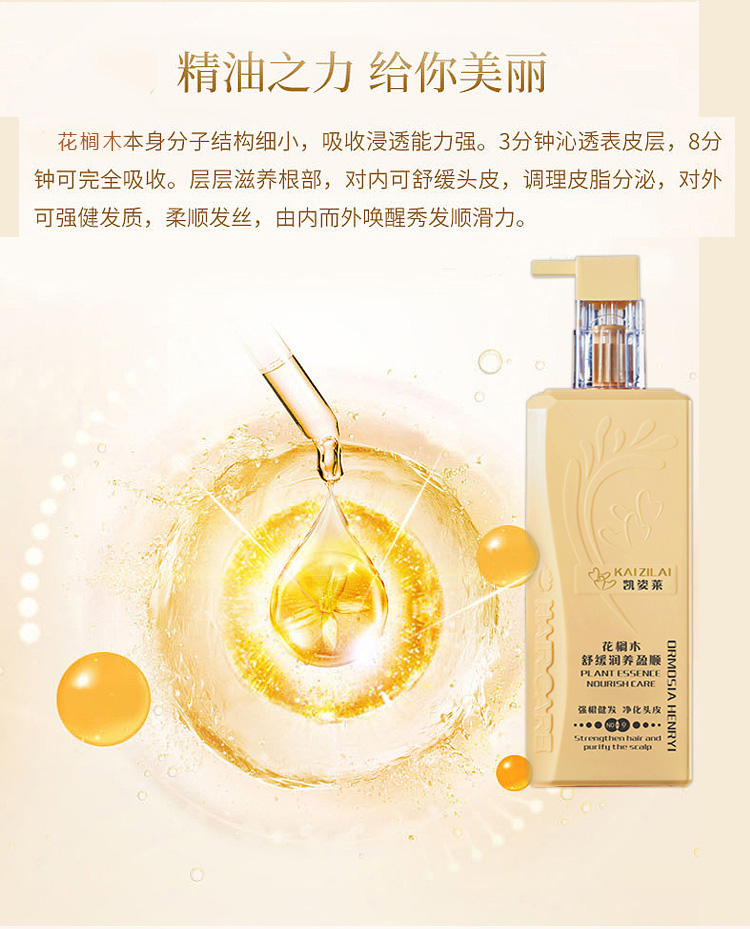 产品特点: 专注植物精油头皮护理,护发更专业,品质更出色,洗发无残留,清爽不油腻,芳香更迷人。 植物精油绵密小孔有着令人称赞的洁净力,配合亲肤PH特点,洁净也养头皮,这也是区别一般洗发水特点,清洁同时以植物精油滋养头皮。