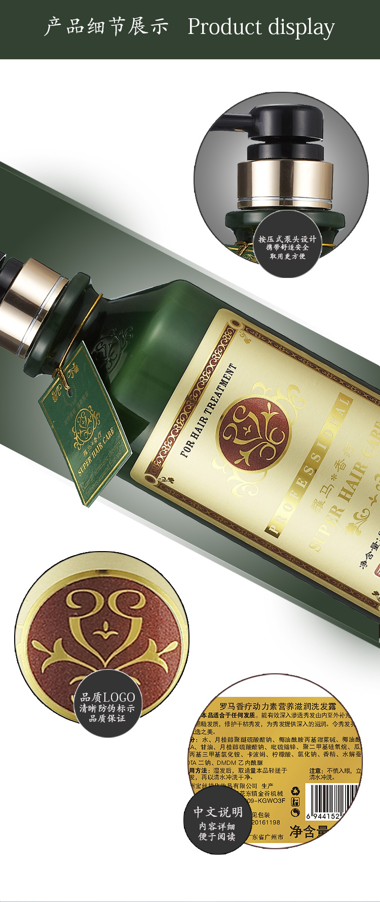 产品特点: 专注植物精油头皮护理,护发更专业,品质更出色,洗发无残留,清爽不油腻,芳香更迷人。 植物精油绵密小孔有着令人称赞的洁净力,配合亲肤PH特点,洁净也养头皮,这也是区别一般洗发水特点,清洁同时以植物精油滋养头皮。